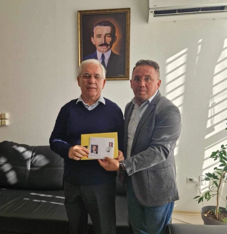 Për të mbajtur frymën atdhetare në relacionet institucionale, drejtori Asani ia dhuroi Akademik Gjinushit pullën postale me portretin e Hasan Prishtinës, në 150 vjetorin e lindjes së tij.
