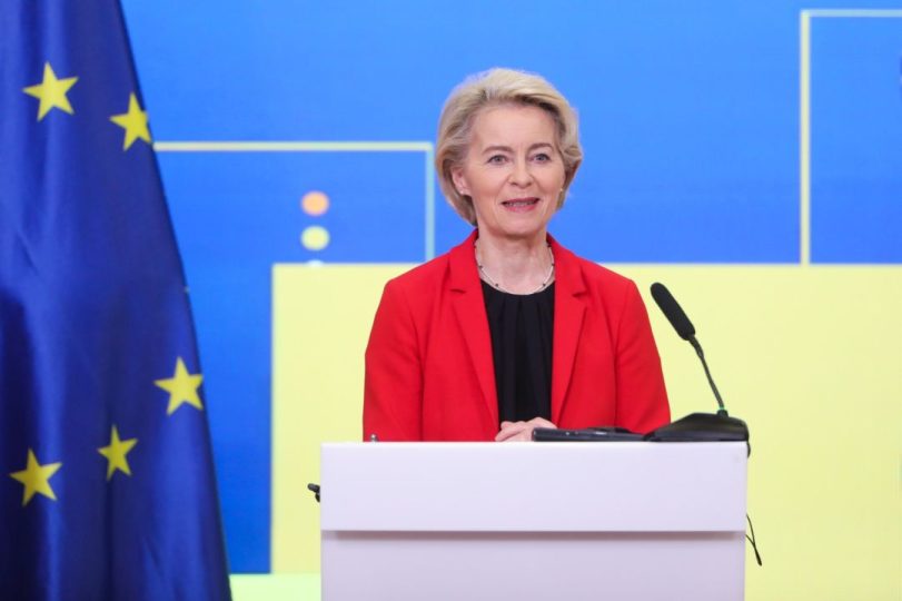 Jeni në rrugën e duhur dhe me padurim ju pres në gjirin e Bashkimit Europian, me gjuhën dhe identetin tuaj. Me këto fjalë e filloi fjalimin e saj pas takimit me kryeministrin Kovaçevski, kryetarja e Komisionit Europian, Ursula von der Leyen. Eurokomesarja bëri apel deri te të gjitha partitë politike që të mbështesin ndryshimet kushtetuese sepse siç thotë, të gjithë bartin përgjegjësinë për të ardhmen e vendit.