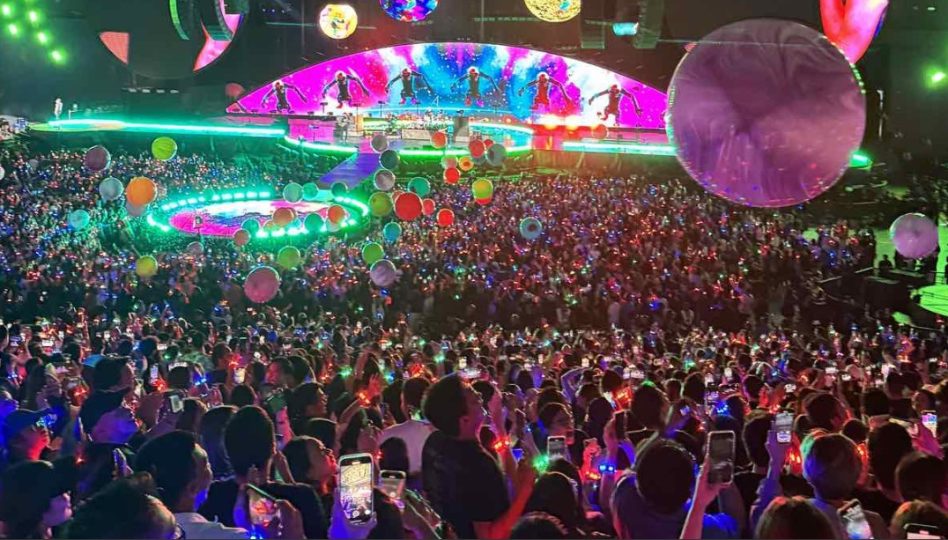 Gjatë shfaqjes së Coldplay, Chris Martin bëri shaka për trafikun në Manila dhe falënderoi audiencën për këmbënguljen.