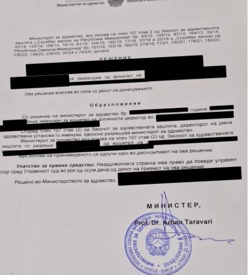 Se Taravari nuk e respekton shqipen flasin dokumentet e lëshuara nga ky dikaster. Që nga dita e parë ai ka filluar me shkarkimin e drejtorëve shqiptar që janë në klinika por mendojnë ndryshe.